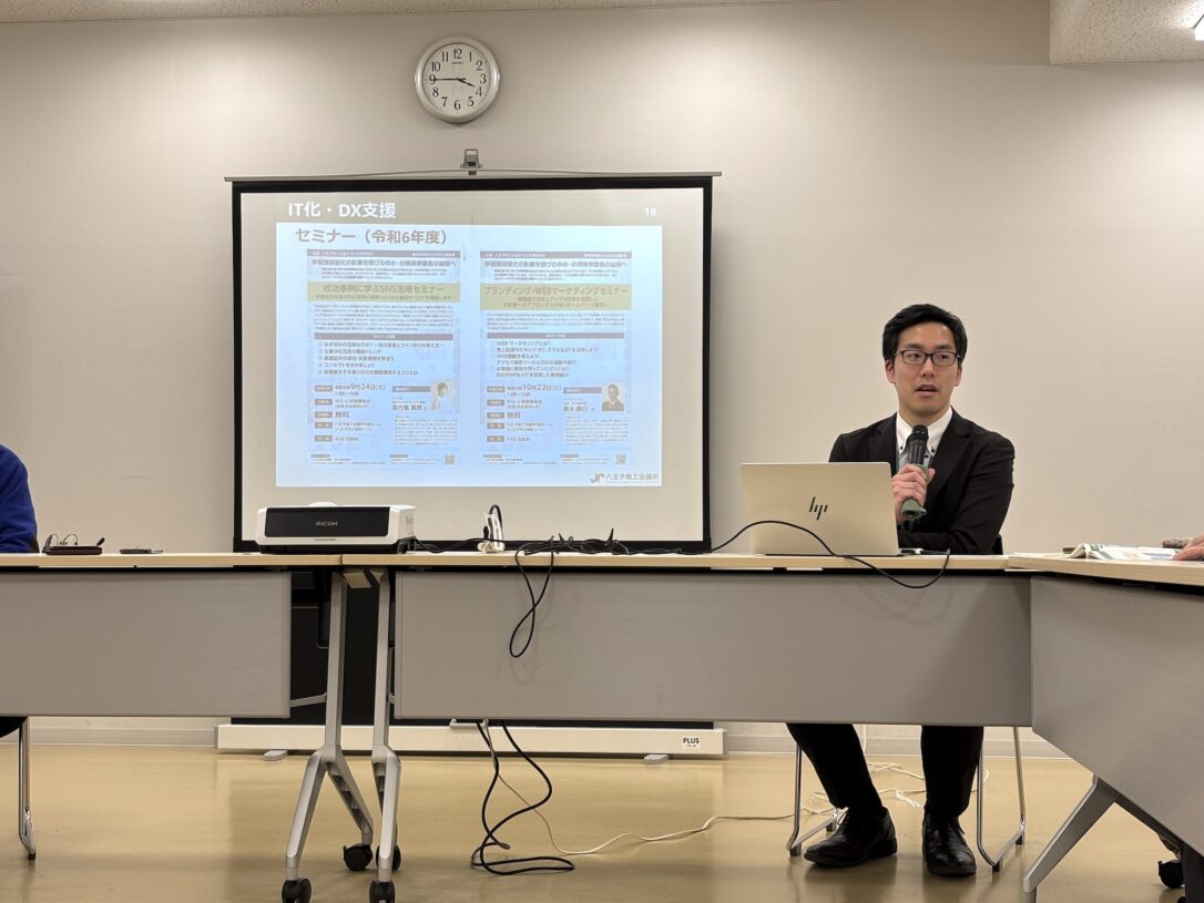 今回は、八王子商工会議所 総務部 係長の泉慶佑さまをお招きし、「八王子商工会議所 産業振興の取り組み」と題し、地域の中小企業と深く接する商工会議所の視点から、普段の業務で自治体の産業振興計画をどのくらい意識しているのかについてや、他の支援機関との役割分担等についてお話をいただきました。