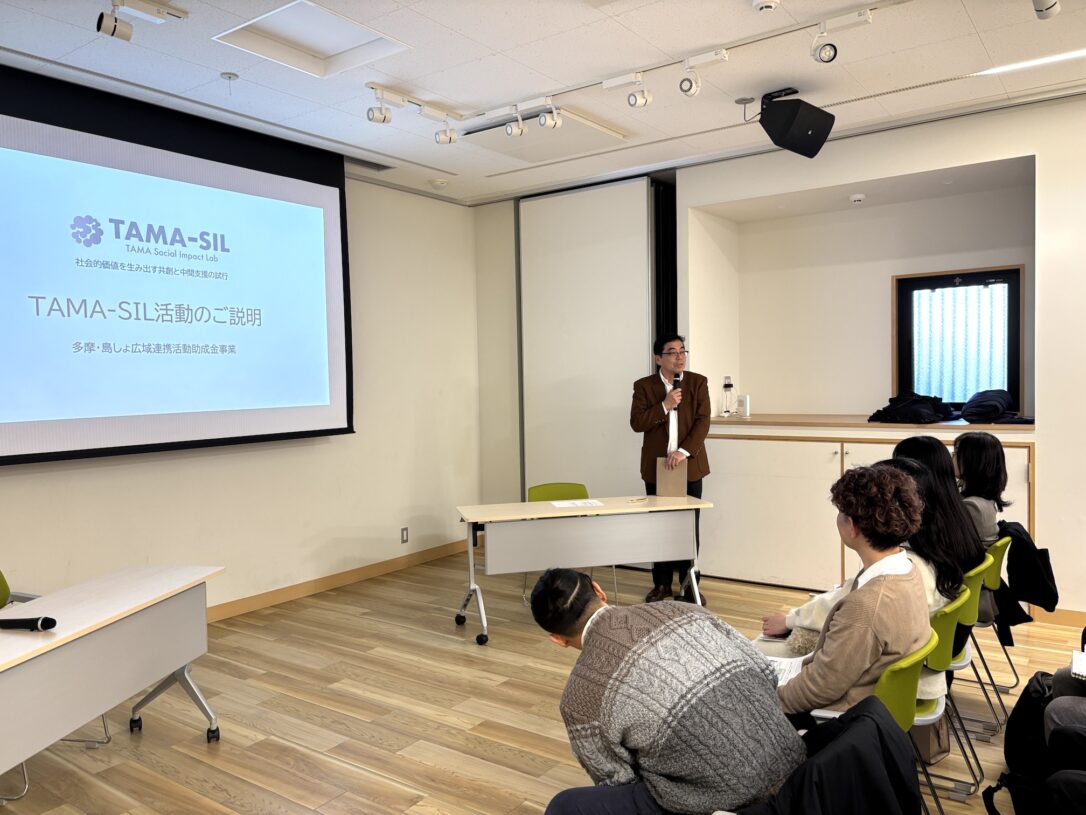 当日は、最初にTAMA-SIL事務局の多摩大学総合研究所 副所長(多摩大学経営情報学部 教授)の長島剛より、本日参加されている皆様のご紹介とTAMA-SILの2025年度活動報告にくわえ、今後の活動予定をお伝えしました。